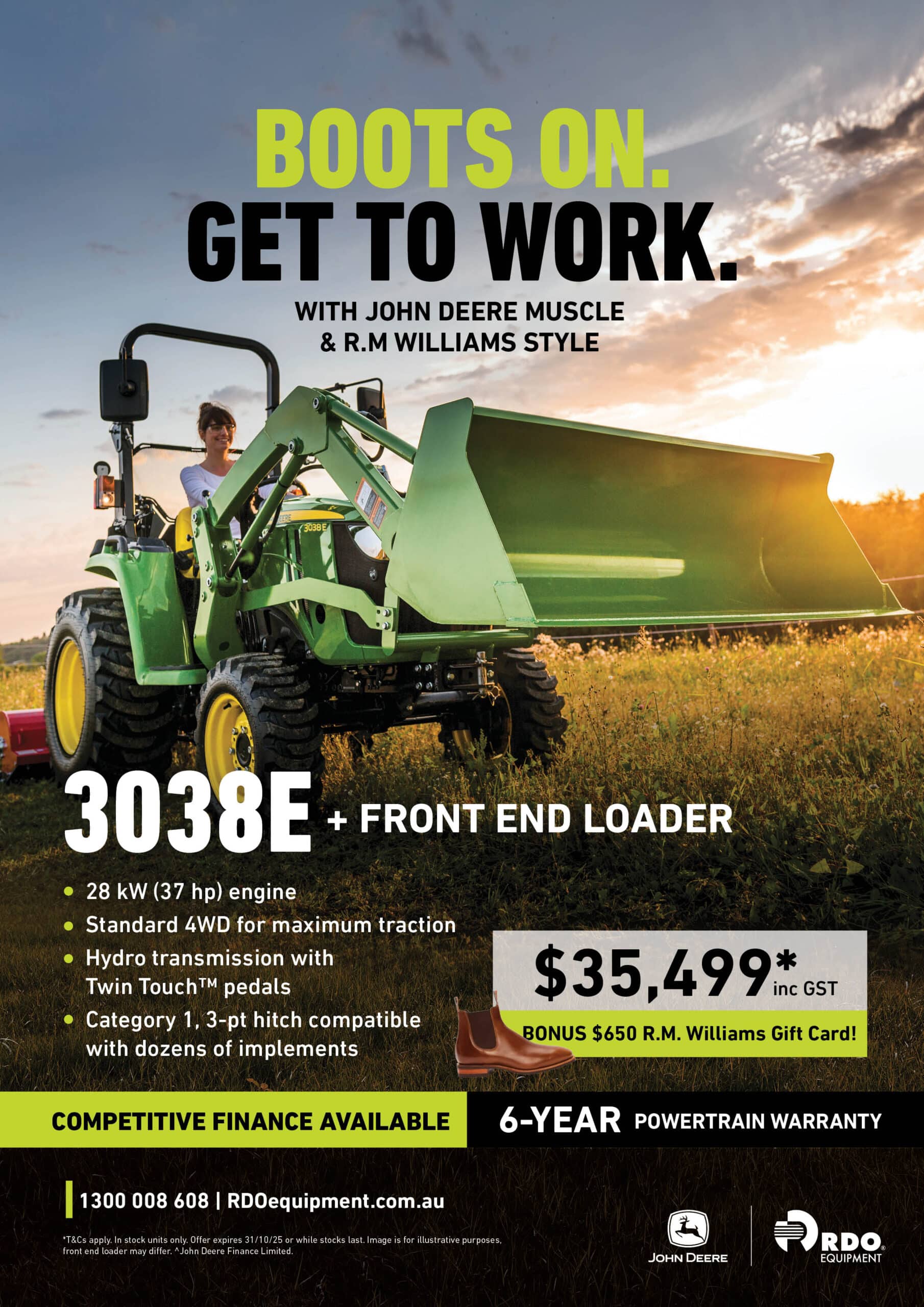 With options from 32 to 45 horsepower, the John Deere 3 series is the only tractor you’ll need for slashing, finish mowing, rotary hoes, heavy loader work and post hole boring on a large property.