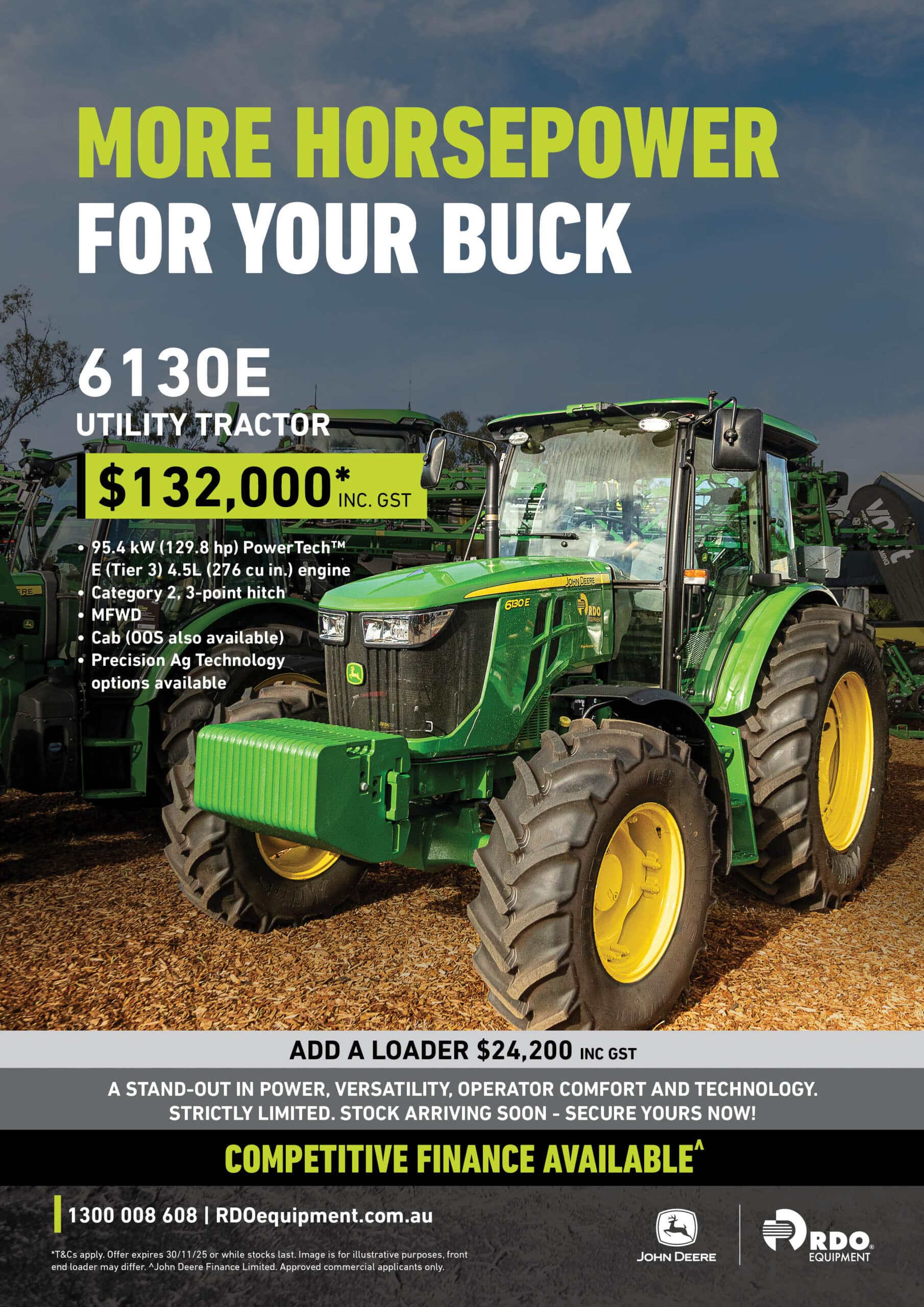 - 95.4 kW (129.8 hp) PowerTechâ„¢ E (Tier 3) 4.5L (276 cu in.) engine