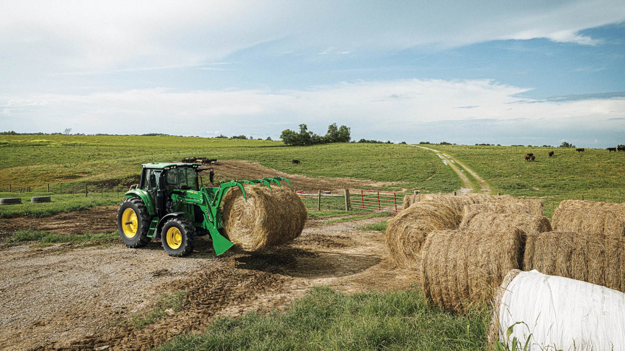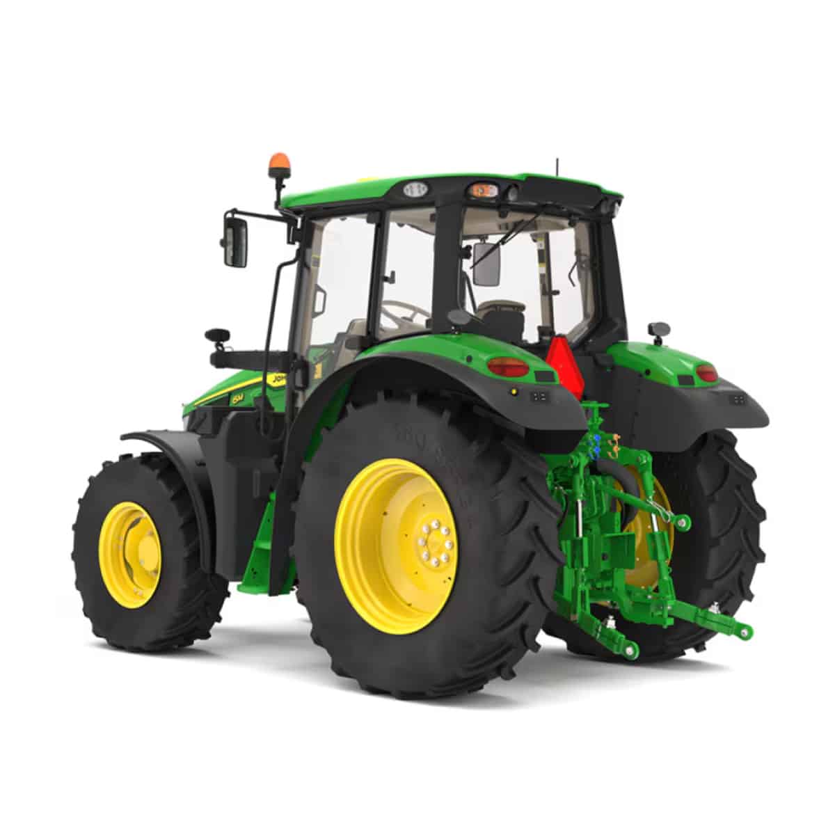 When you work in small spaces, a short wheelbase is critical in providing the tight turning radius needed to maneuver. The 6M features a 17.8-cm (7-in.) shorter wheelbase (240 cm [94.5 in.]) on three tractors ranging from 95 to 125 engine horsepower. Take advantage of a 4.3-m (14-ft) turning radius, perfect for cleaning out barns, working livestock, baling hay, roadside mowing applications, and more.