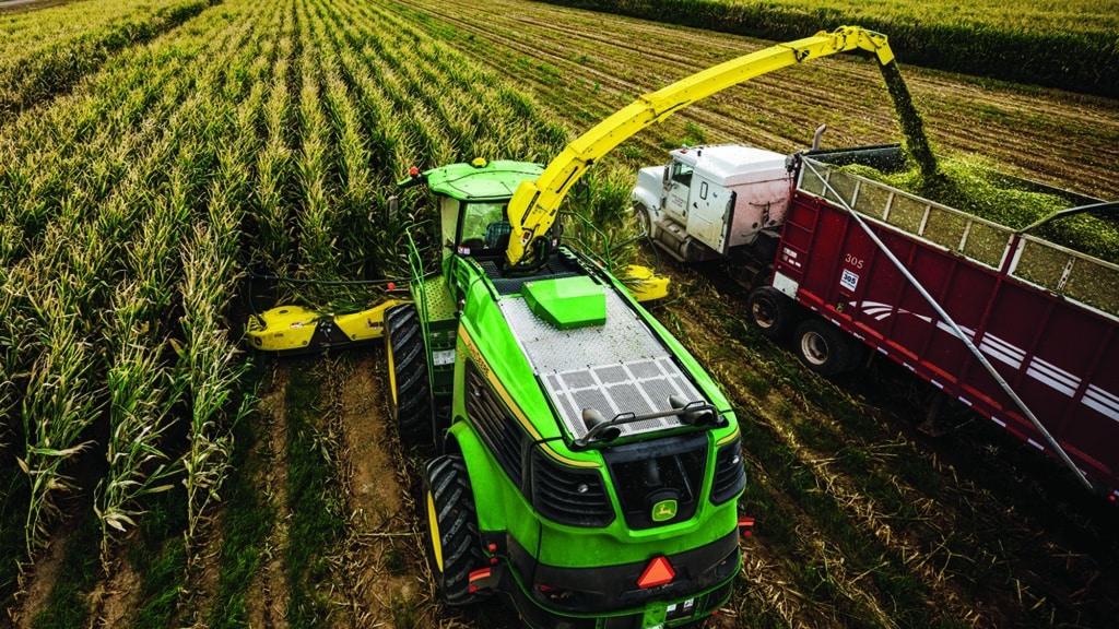 John Deere SPFH come with variable header drive in base. The header speed is automatically synchronized with the feeding speed and length of chop through a hydrostatic IVTâ„¢ drive system. This ensures a gentle and even crop transfer from the header into the machine without blocking or disrupting material transition. Producers receive the benefit of high chopping quality and full leverage of the header and crop flow potential.