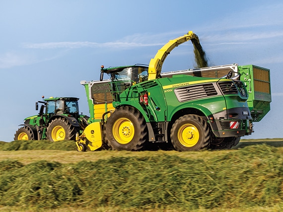The John Deere 9000 Series Self-Propelled Forage Harvesters (SPFH) have been developed with a clear focus on machine performance: more throughput and less fuel consumption while providing maximum uptime and low cost of operation. A key success factor is the HarvestMotion concept of lower engine rpm at higher harvesting component speeds.