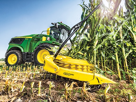 John Deere rotary harvesting units are built for reliable and powerful feeding of high-capacity forage harvesters.  The 300plus Series Headers are the universal solution for different crops up to 4-m (13.1-ft) tall. The 400plus Series Headers are the perfect solution for high-yielding crops.