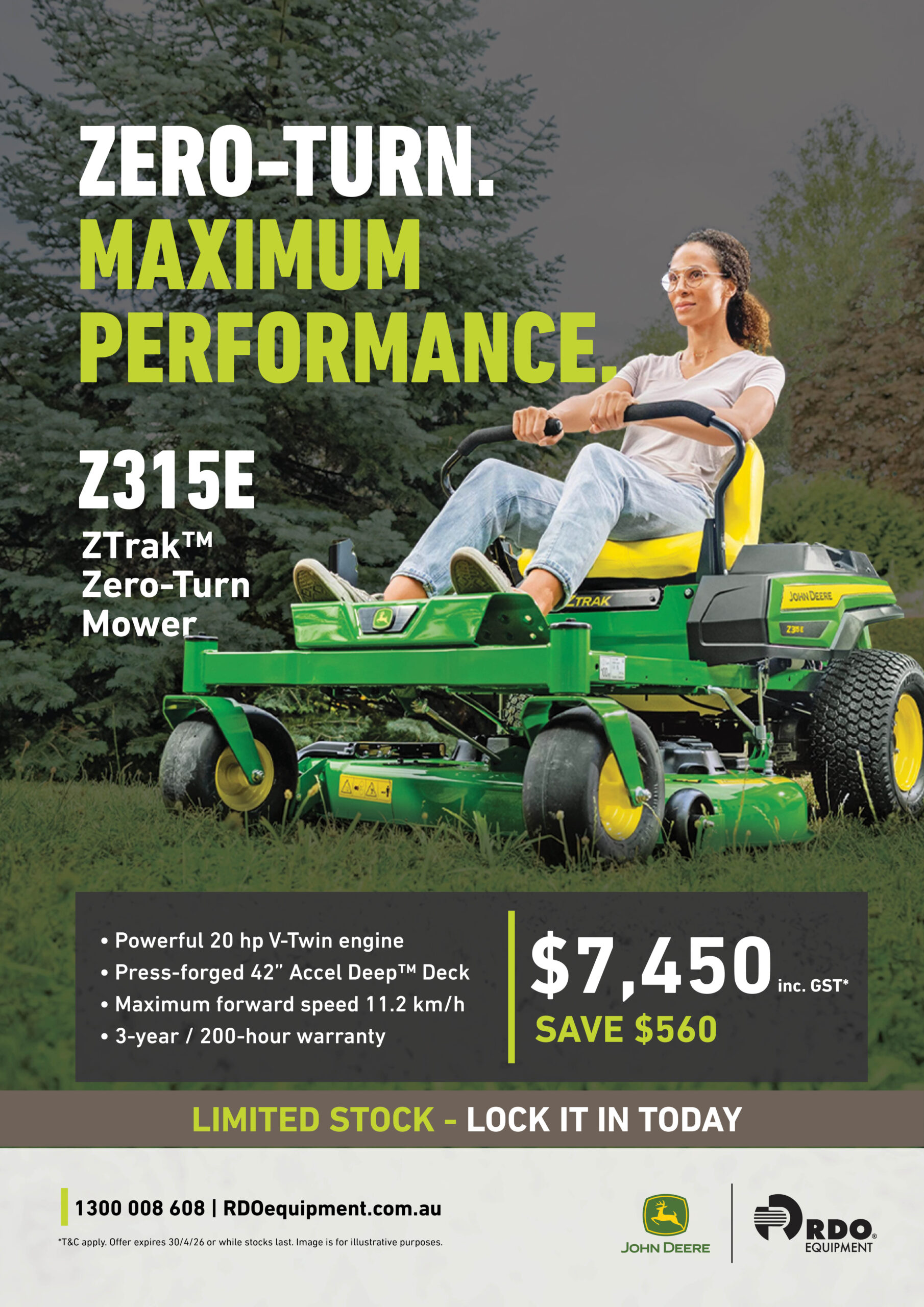 The Z300 Series ZTrak Zero-Turn Mowers mow well for a small price. The durable, thick frame, tough maintenance-free dual transmission, Accel Deep mower deck, 11.3km/h forward mowing speed and comfortable seat make for a smooth ride and superior cut.